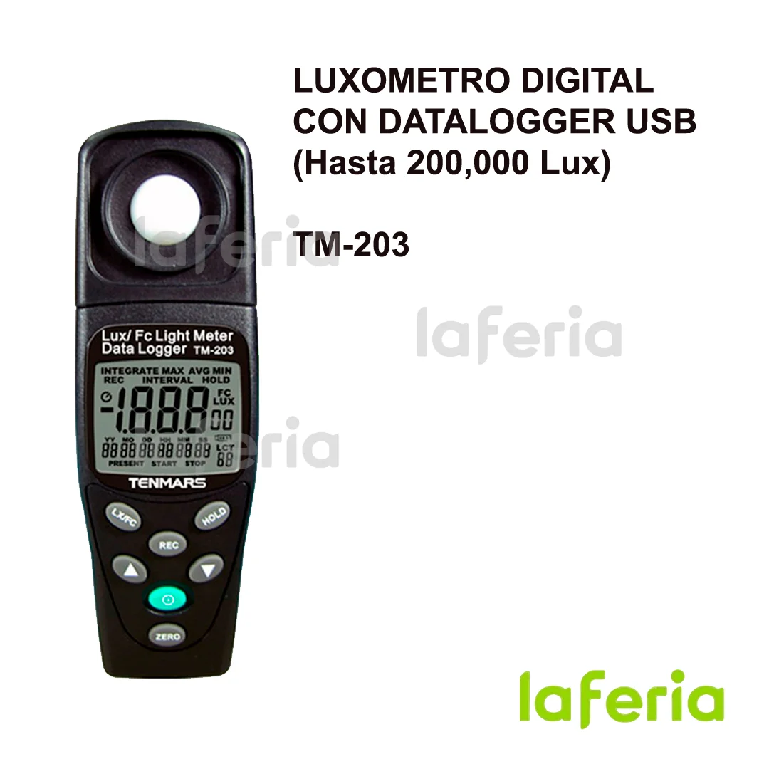 TM-203 Luxómetro Digital con Datalogger USB (Hasta 200,000 Lux)